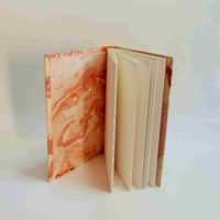 Sa couverture est en papier décoré avec la technique du suminagashi et de la linogravure