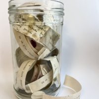 Le message est écrit depuis une machine à écrire vintage sur papier ecoprint (papier teint avec de la teinture végétale)