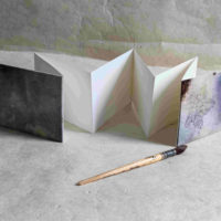Leporello (carnet accordéon) de papier aquarelle 300 g blanc (format paysage 11×15 cm). Idéal pour les dessins ou aquarelles au format panoramique.
